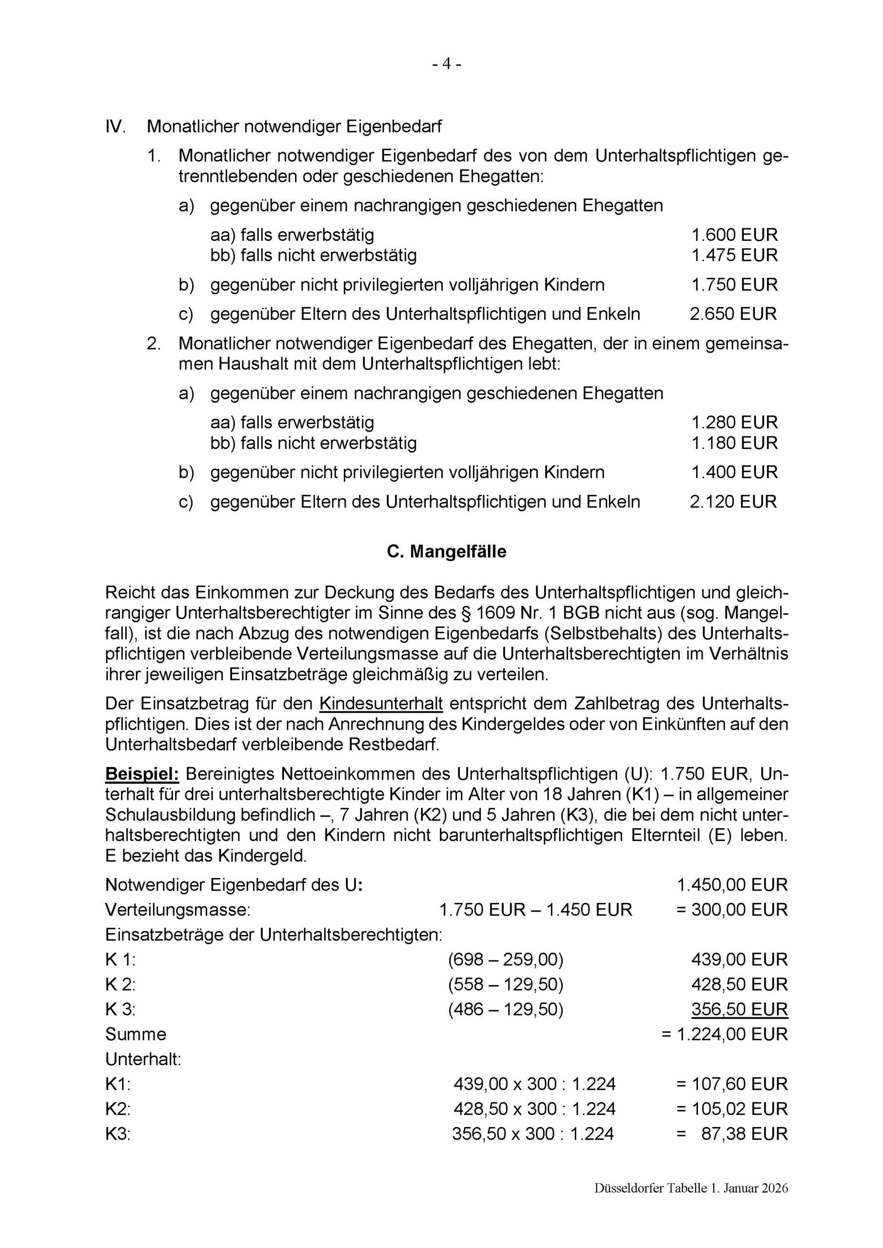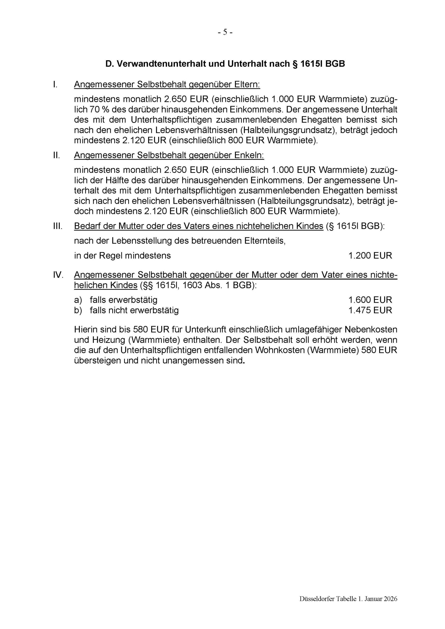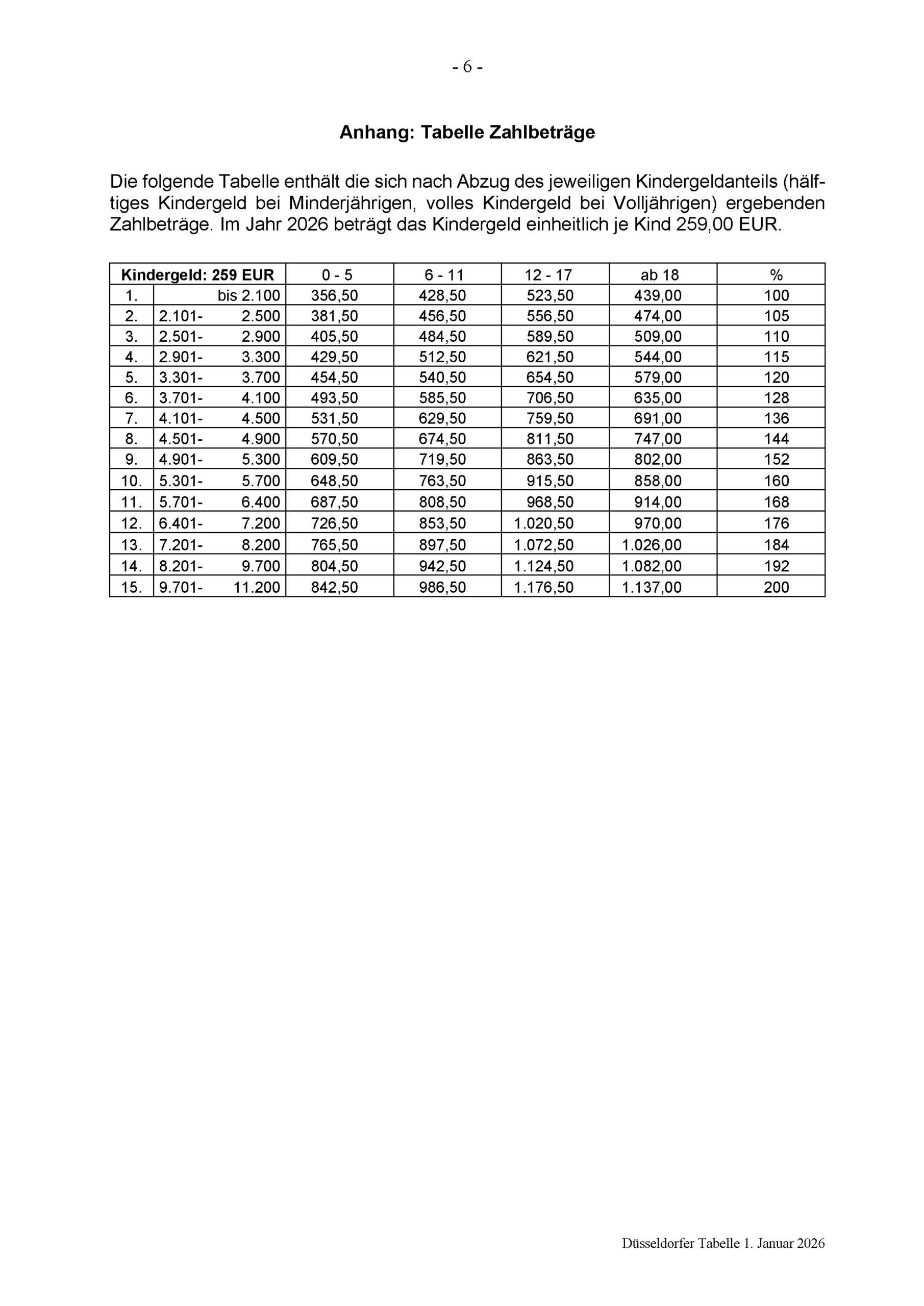Neue Düsseldorfer Tabelle ab dem 01.01.2026